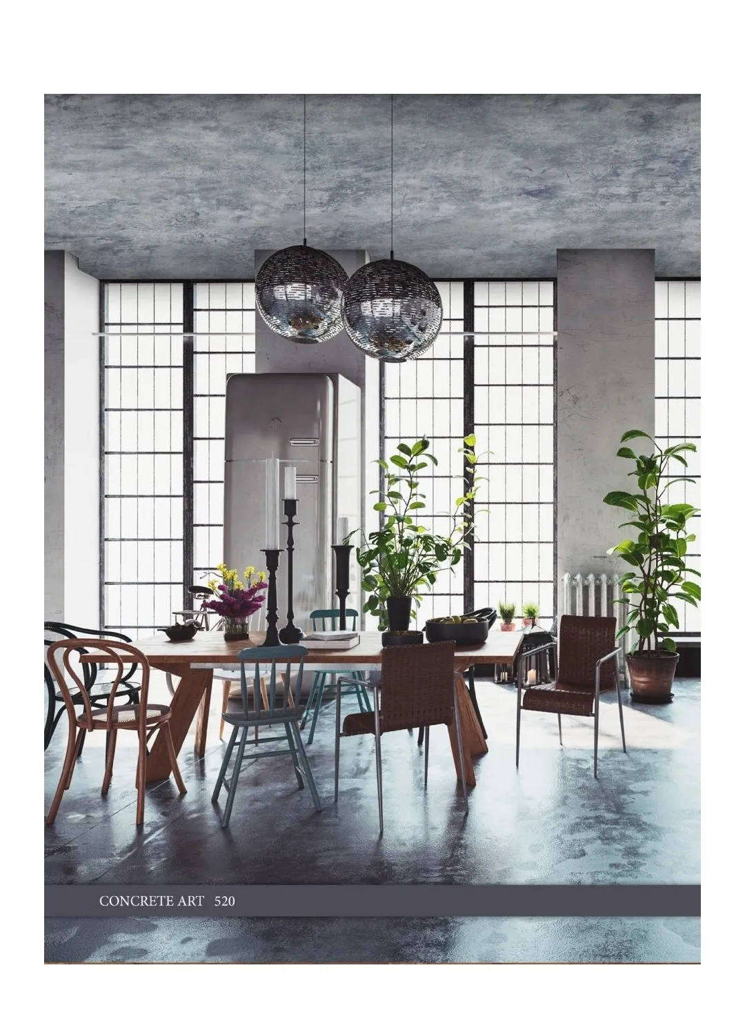 • Современная эстетика — реалистичная имитация бетона от светло-серого до насыщенного антрацита гармонично сочетается с кирпичом, деревом, стеклом и другими материалами. Это удачный пример оформления потолков в интерьерах в стиле лофт, индустриальный, минимализм.