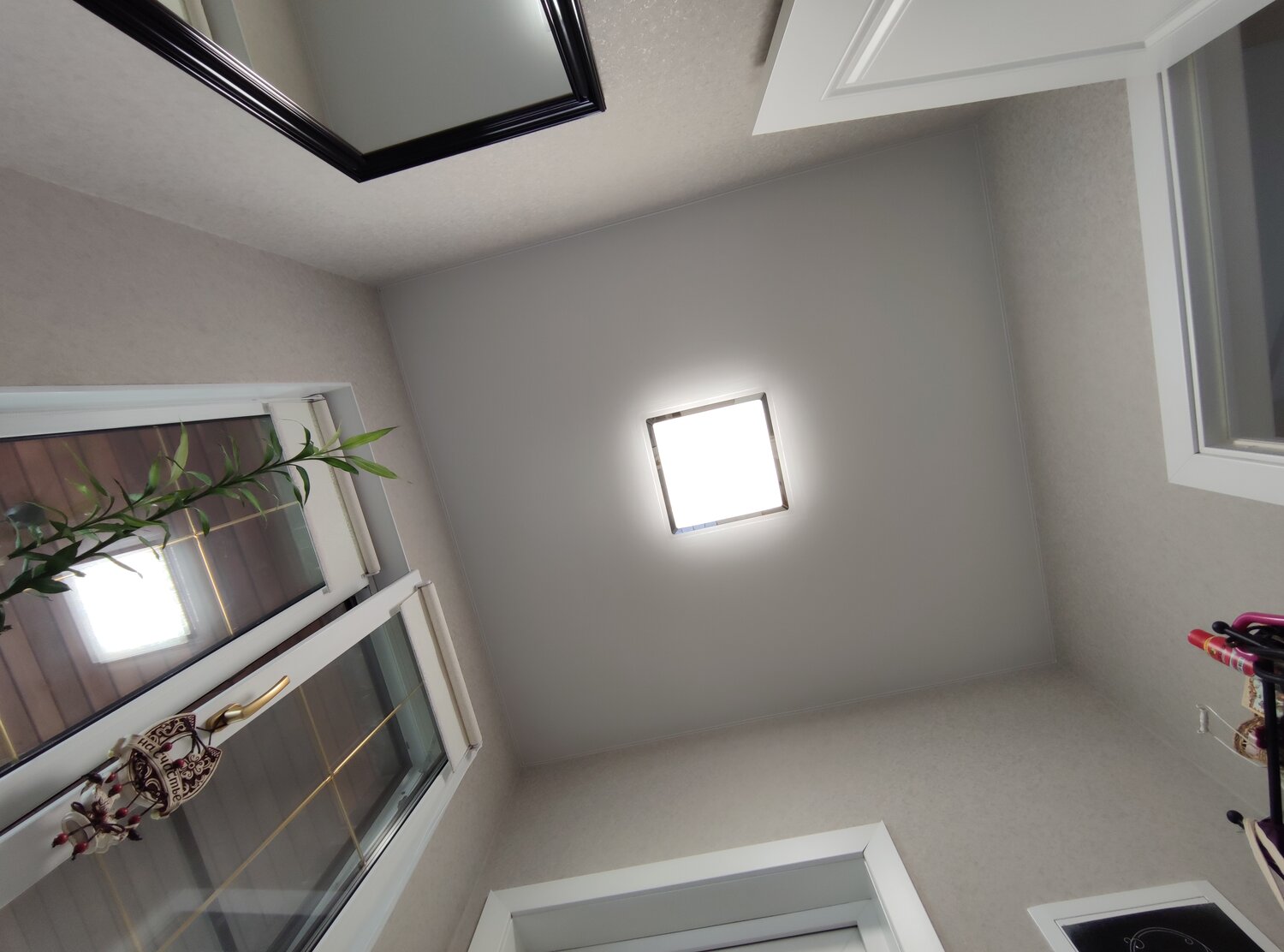 Долго выбирали вариант для гостиной и остановились на световых потолках. Сразу видно разницу по сравнению с установкой обычного потолка — интерьер стал современным и стильным. Мастера предложили сделать двухуровневый потолок с аккуратно встроенной световой лентой. Работы начали с подготовки чернового потолка, потом выровняли поверхность потолка и приступили к профессиональному процессу монтажа потолков. Итог — идеально натянутое полотно без складок, качество впечатляет.